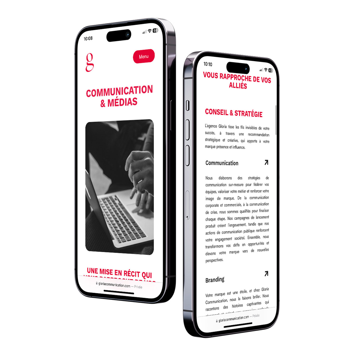C’est au sein de cette agence que j’ai réalisé mon premier stage dans le domaine de la création digitale. Durant une période d’environ six semaines, j’ai principalement travaillé sur le branding, mais aussi sur la communication et le marketing de l’agence. Mon objectif était d’établir l’identité visuelle de Gloria Communication.